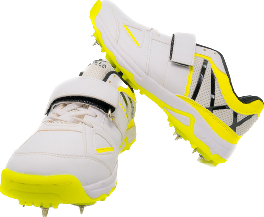 AGIA Hattrick - SwiftStrike Cricket Spike Shoes for Kids / Youth / Men - White and Yellow